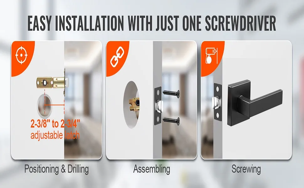 Ви можете легко встановити чорну дверну ручку на ліві чи праві двері, не турбуючись про вирівнювання та встановлення. Це ідеальний вибір для приватних домогосподарств, підприємств чи промислових приміщень.